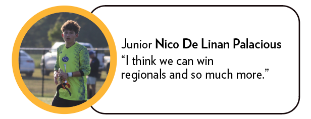Blades of grass soar as the cleats of soccer players from the non-stop kicking and running, attempting to aim the ball just right towards the goal, dodging obstacles in the process. All of this work just to be blocked by a particular obstacle in the way, the goalie, Junior Nico De Linan Palacios. Having a steady or level team can make a huge difference towards greatness. Varsity Head Soccer Coach Andy Glover explains what separates the good players from the great players.